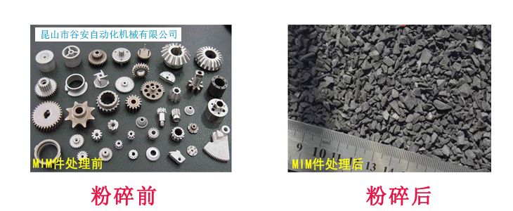 谷安金屬注塑粉碎機,本系列可以粉碎:鐵粉注塑件,不銹鋼粉注塑件,陶瓷粉注塑件,MIM注塑件等治金工件的