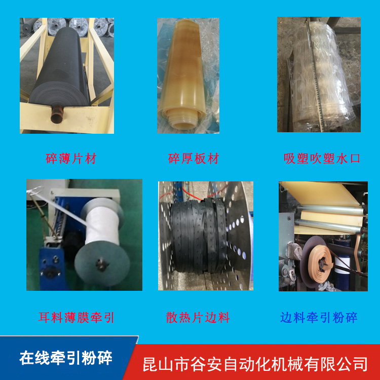本機(jī)型適用于寬面的環(huán)保飲用杯制造中水口料在線(xiàn)配套粉碎使用。制杯機(jī)在生產(chǎn)過(guò)程中,通常在成品流程到打包裝的時(shí)候,會(huì)剩下網(wǎng)狀寬面的水口料,按傳統(tǒng)方法用收卷機(jī)收集,然后由人工運(yùn)走集中粉碎,在收集過(guò)程中會(huì)消耗人工,產(chǎn)生污染,降低產(chǎn)品質(zhì)量。本機(jī)型還適用于卷料的單獨(dú)使用,當(dāng)無(wú)邊在線(xiàn)邊料機(jī)粉碎機(jī),收集的很多卷料,因?yàn)樘兀茈y粉碎,谷安機(jī)械可以設(shè)計(jì)定做的支架,輕松將您的煩惱排除,變廢為寶,清理出空間,美化車(chē)間。