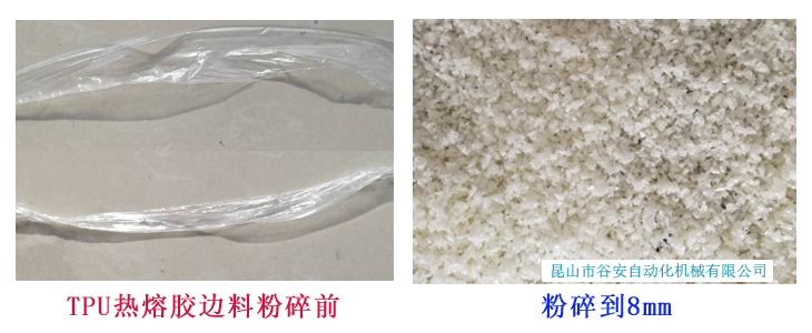 粉碎原料的厚度范圍為0.5-3mm。【如其它厚度材料,請(qǐng)訂購(gòu)時(shí)加以注明】。