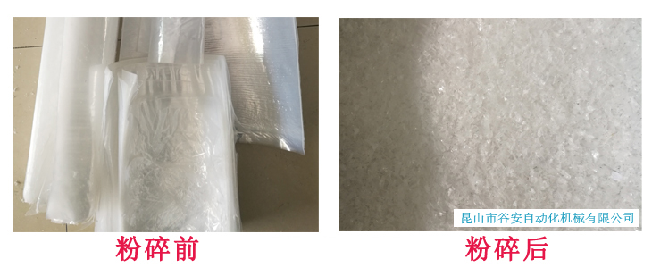 答:視薄膜的厚度,以厚度0.04mm的膜料為例,谷安粉碎機(jī)最小能粉碎至4mm以下。